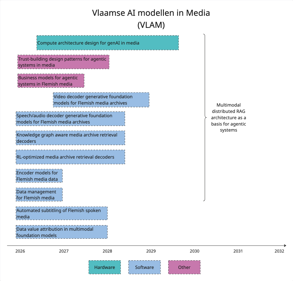The work fits into the new VLAM (Vlaamse AI modellen in Media) roadmap, more specific under the “Speech/audio decoder generative foundation models for Flemish media archives” chapter. This work will help in understanding how the disruption of agentic AI will impact the media companies, and will help in creating future multi-modal interfaces with excellent support for speech and language based interaction which is still the primary way humans convey information.