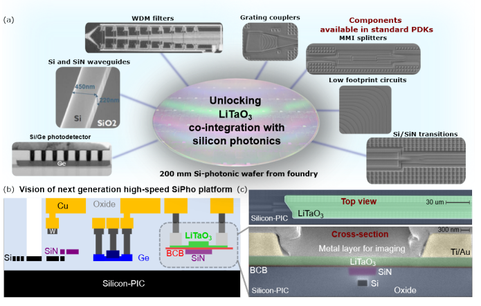 This PhD project aims to develop and demonstrate a heterogeneous integration platform where lithium tantalate thin films are bonded on silicon photonics, while co-integration with CMOS-compatible electronic drivers ensures high-performance and scalable transceiver modules. Here there weill be a focus on material integration, device design enabling also the co-integration with the electronics to finally show a system level demonstration.